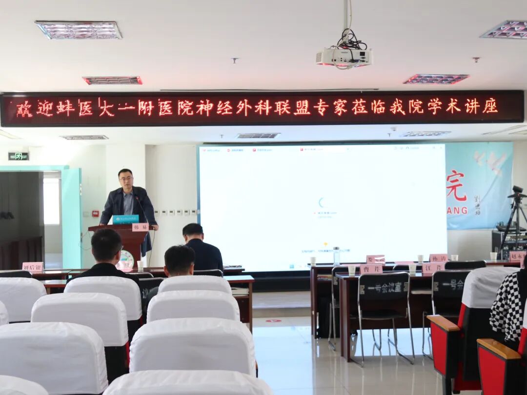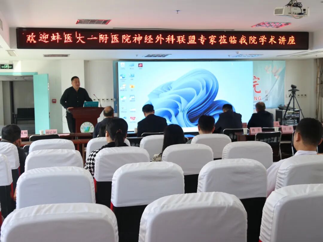 讲座开始前,颍上县人民医院副院长李璘首先对各位专家的到来表示热烈欢迎,对我院发展给予的支持表示感谢。表示蚌埠医科大学第一附属医院神经外科团队在人才培养和技术指导方面,给予我院很大的支持与帮助,期待今后两院能有更多形式的学习交流及合作方式,更好地推动我院的整体业务发展。