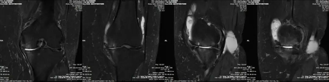 郑奶奶伴有高血压、脑梗死、高尿酸血症等疾病和严重肥胖的特殊体质,术前联系心血管内科、神经内科、麻醉科及手术室等多学科进行会诊,而后经科室全体讨论,结合膝关节磁共振检查,认为郑奶奶是膝关节内侧单间室病变,外侧间室及髌股关节正常,膝关节韧带完整,关节活动范围基本正常,随行左侧膝关节内侧单髁置换术(UKA)治疗。